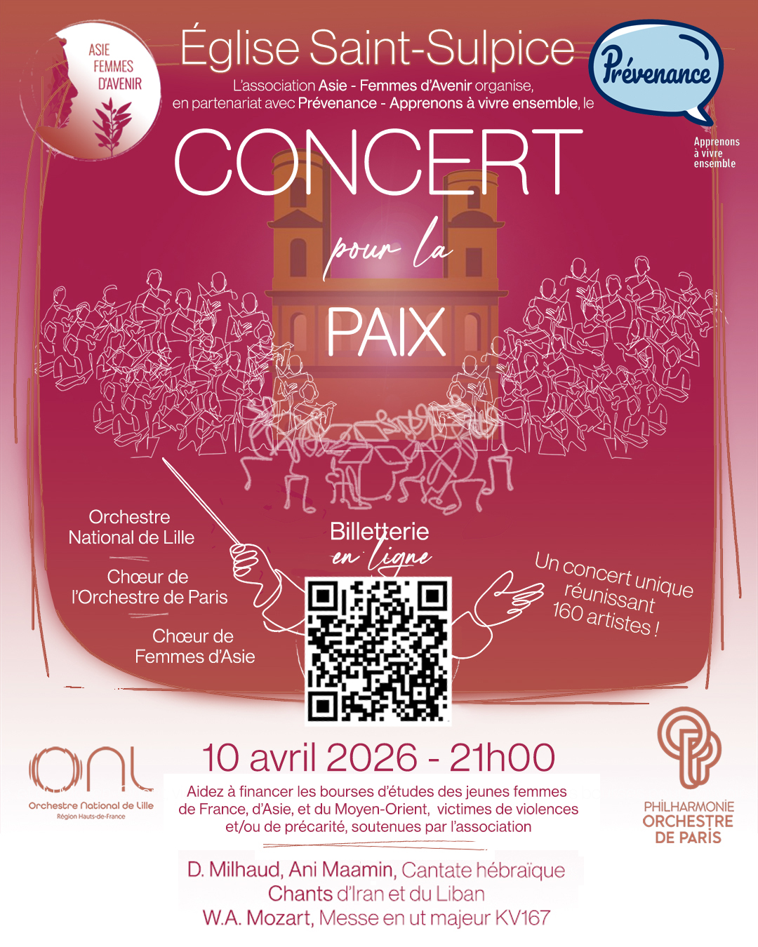 Le 10 avril 2026, l’église Saint-Sulpice à Paris accueillera le « Concert pour la Paix« 100 % des bénéfices financeront des bourses d’études pour des jeunes femmes victimes de violences et de précarité...